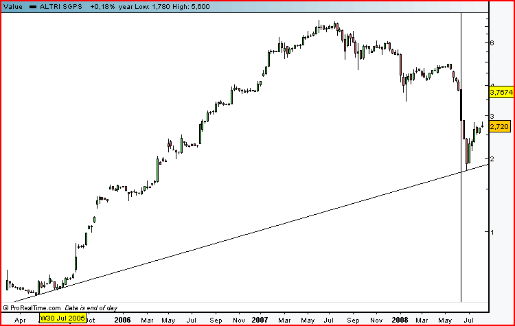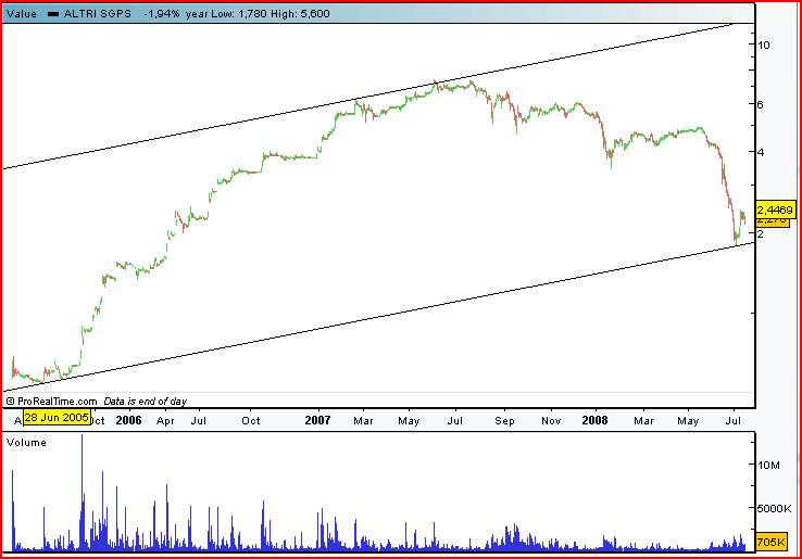 Quanto á ALTRI [ALTR.LS] apenas a referir que reagiu como era de esperar no seu suporte ascendente de longo prazo , antes de tomarem uma posição neste titulo aconselho a esperar por um segundo toque na LT ascendente de longo prazo e se o mesmo aguentar penso estarmos no inicio de um novo Bull Market nesta acção.